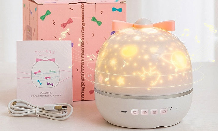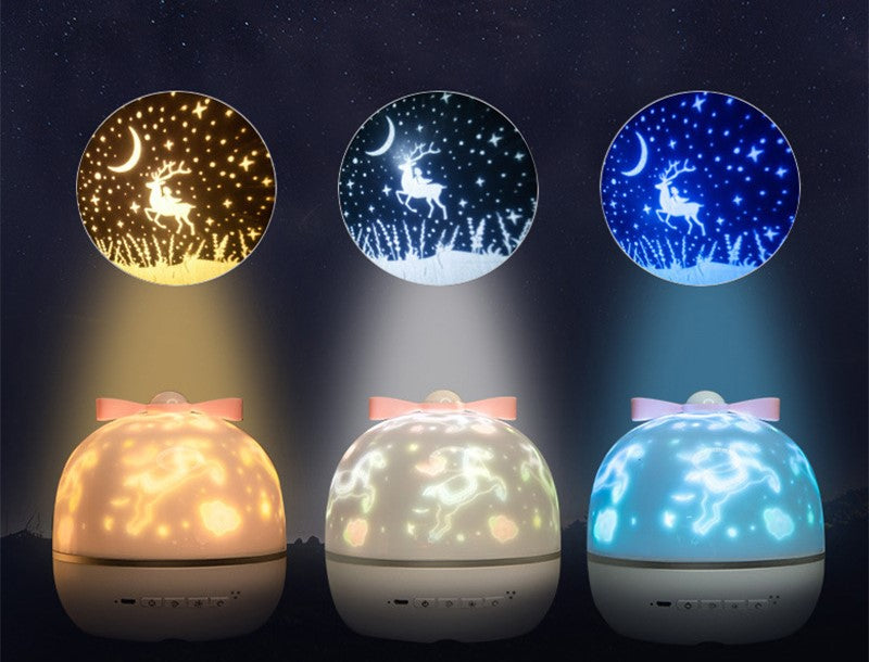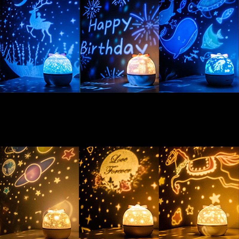 - 【6 Optional Projection Film】 6 Themes can be switched at will, three kinds of light adjustment, Remove the cover, the rotating projector can project colorful scenes on the wall, ceiling or tent.